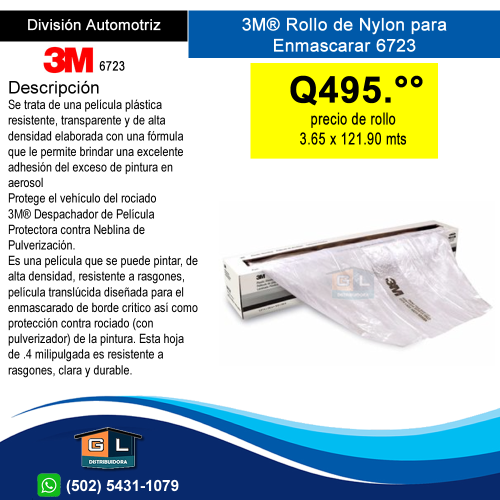 3m 6723 Nylon para enmascarar pintable – 3.65 x 121.9 MTS sin carga electrostatica