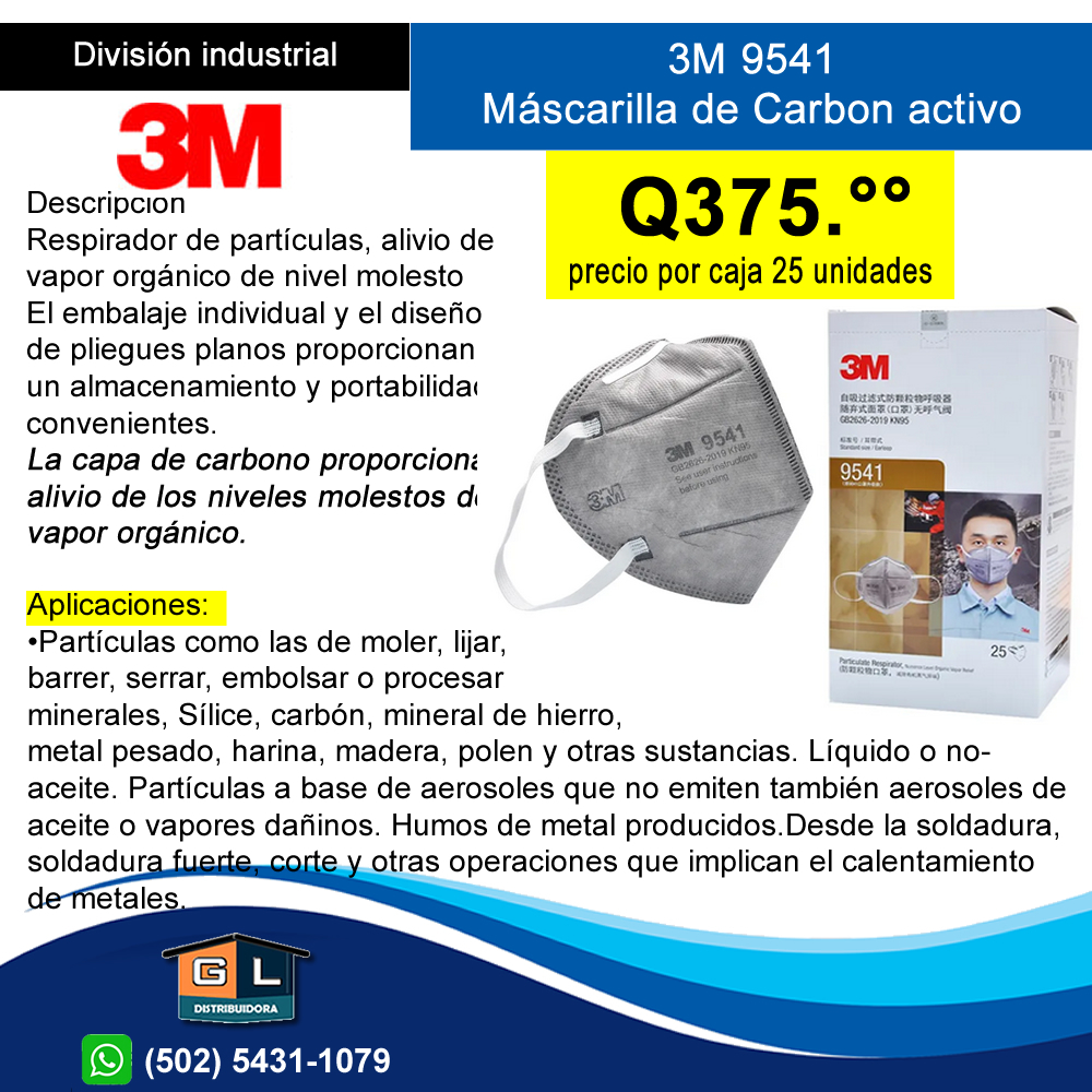 Ficha Tecnica 3m 9541 Carbon Activo – KN95 Caja de 25 unidades – GL Distrbribuidora