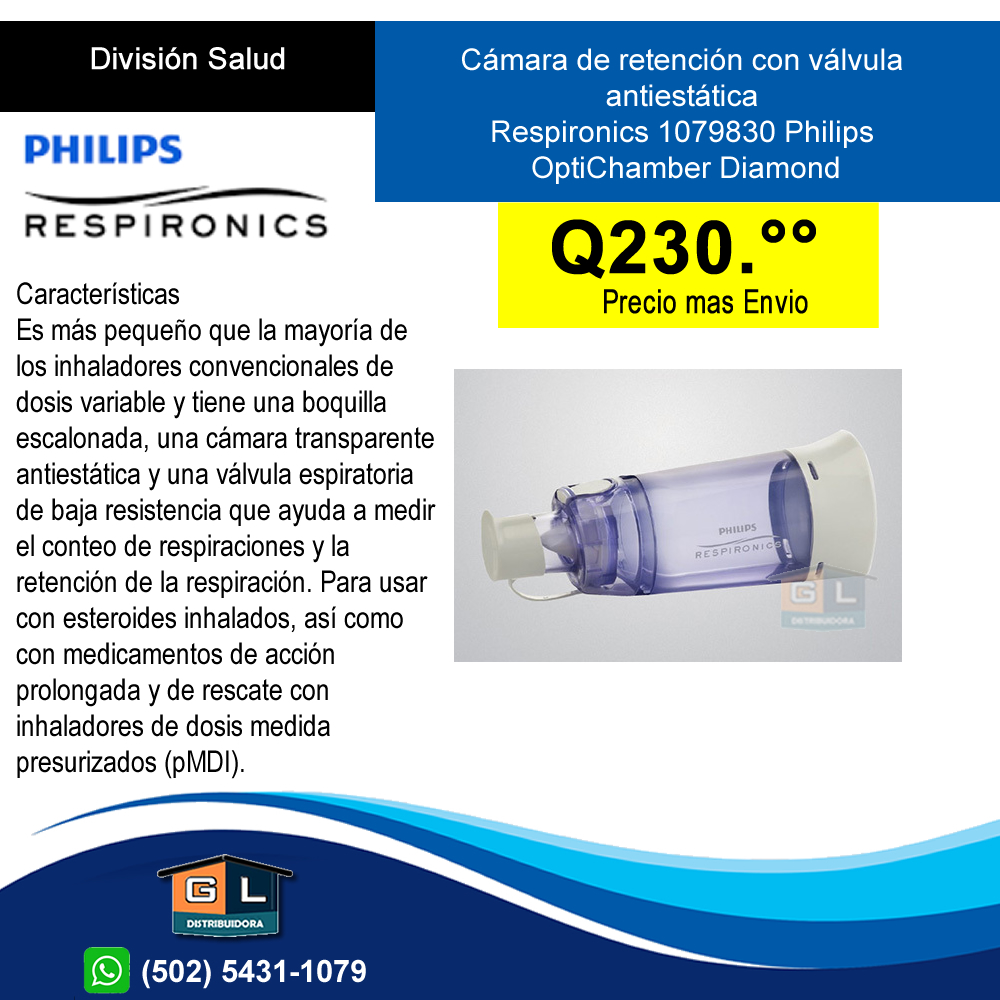 Cámara de retención con válvula antiestática Respironics 1079830 Philips OptiChamber Diamond