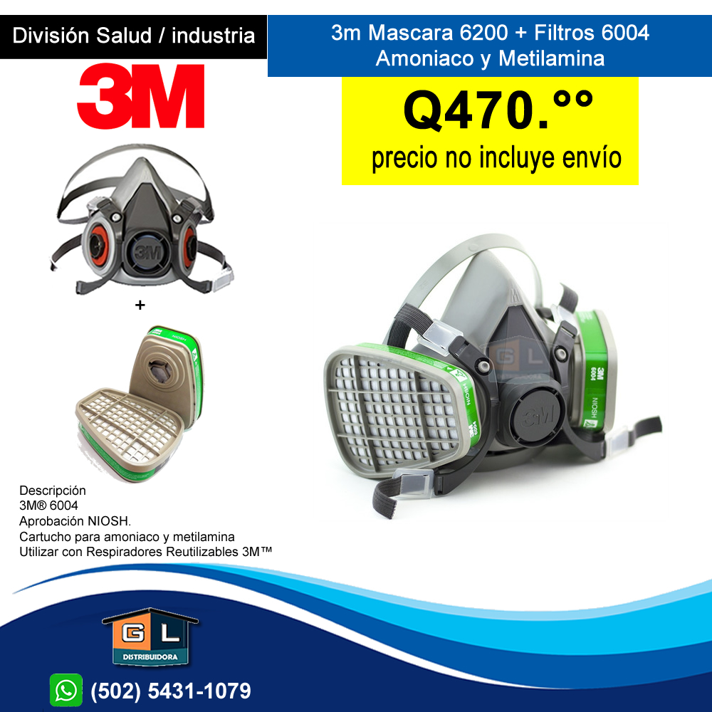 3m Mascara Media Cara 6200 y Filtros 3m 6004 Amoniaco y Metilamina